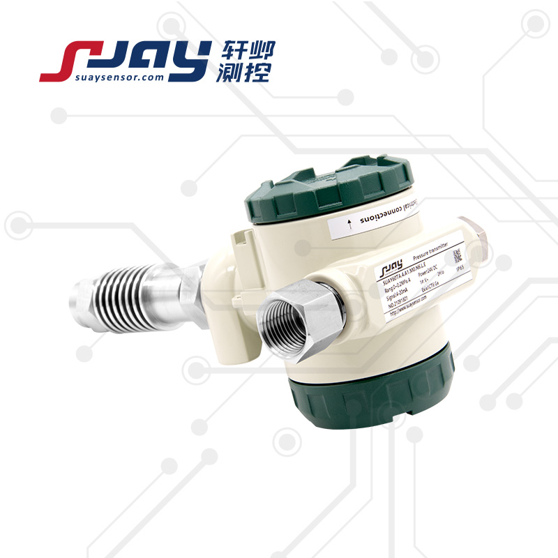 SUAY70 高溫壓力變送器采用耐高溫的硅-藍寶石技術(shù)的感壓膜片作為核心,匹配特殊的溫度補償和片上線性修正技術(shù),使其在寬泛的溫區(qū)內(nèi)有著良好 的綜合性能。藍寶石材料對溫度變化極不敏感,在-40 至380℃的高溫下,也有著ji佳的彈性力敏特性,不會產(chǎn)生疲勞、滯后、PN 節(jié)漂移等現(xiàn)象,并且抗輻射性能優(yōu)異。耐磨損、抗疲勞的鈦合金感壓膜片,使該系列產(chǎn)品不僅可以承受高溫,更兼具良好的耐用性、抗沖擊性。利用β相高溫力敏材料與合理的結(jié)構(gòu)設(shè)計,可將溫度擴展至 450-850℃。該系列壓力傳感器測溫范圍寬,壓力量程覆蓋范圍廣,綜合精度高且穩(wěn)定性好,測量介質(zhì)兼容性好,廣泛應(yīng)用航空航天、航海及造船、石油化工、電廠電站、油田壓力、食品、醫(yī)藥、環(huán)保、科研院所等針對高溫流體的精準測量,是極佳的高溫壓力測量解決方案。