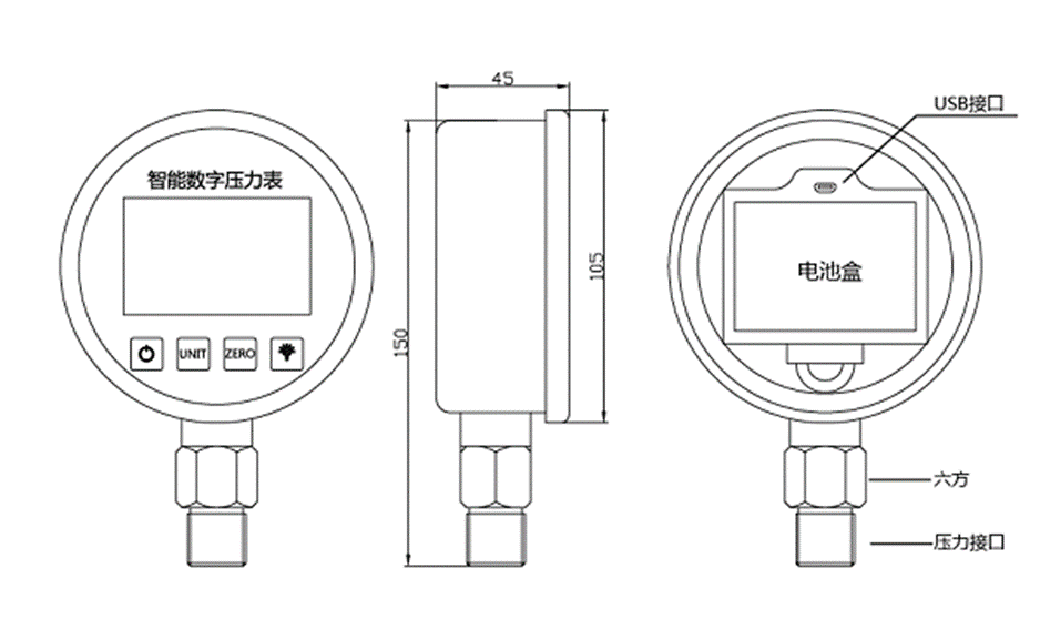 SUAY80壓力開關(guān)是一款高精度智能型數(shù)字壓力表,內(nèi)置高精度壓力傳感器,能夠準(zhǔn)確的實(shí)時(shí)顯示壓力,并且具有精度高、長期穩(wěn)定性好的特點(diǎn)。配備5位顯示的大尺寸LCD液晶顯示,具有清零、背光、開關(guān)機(jī)、單位切換、低電壓報(bào)警、峰值記錄等多種功能,操作簡單,安裝方便。殼體和接頭采用304不銹鋼,抗震性好,能夠測量氣體、液體、油等對(duì)不銹鋼無腐蝕的介質(zhì)。用3節(jié)5號(hào)電池供電,也可以采用USB供電,續(xù)航功耗低、時(shí)間長,適用于便攜式壓力測量、設(shè)備配套、校驗(yàn)設(shè)備等壓力測量領(lǐng)域。